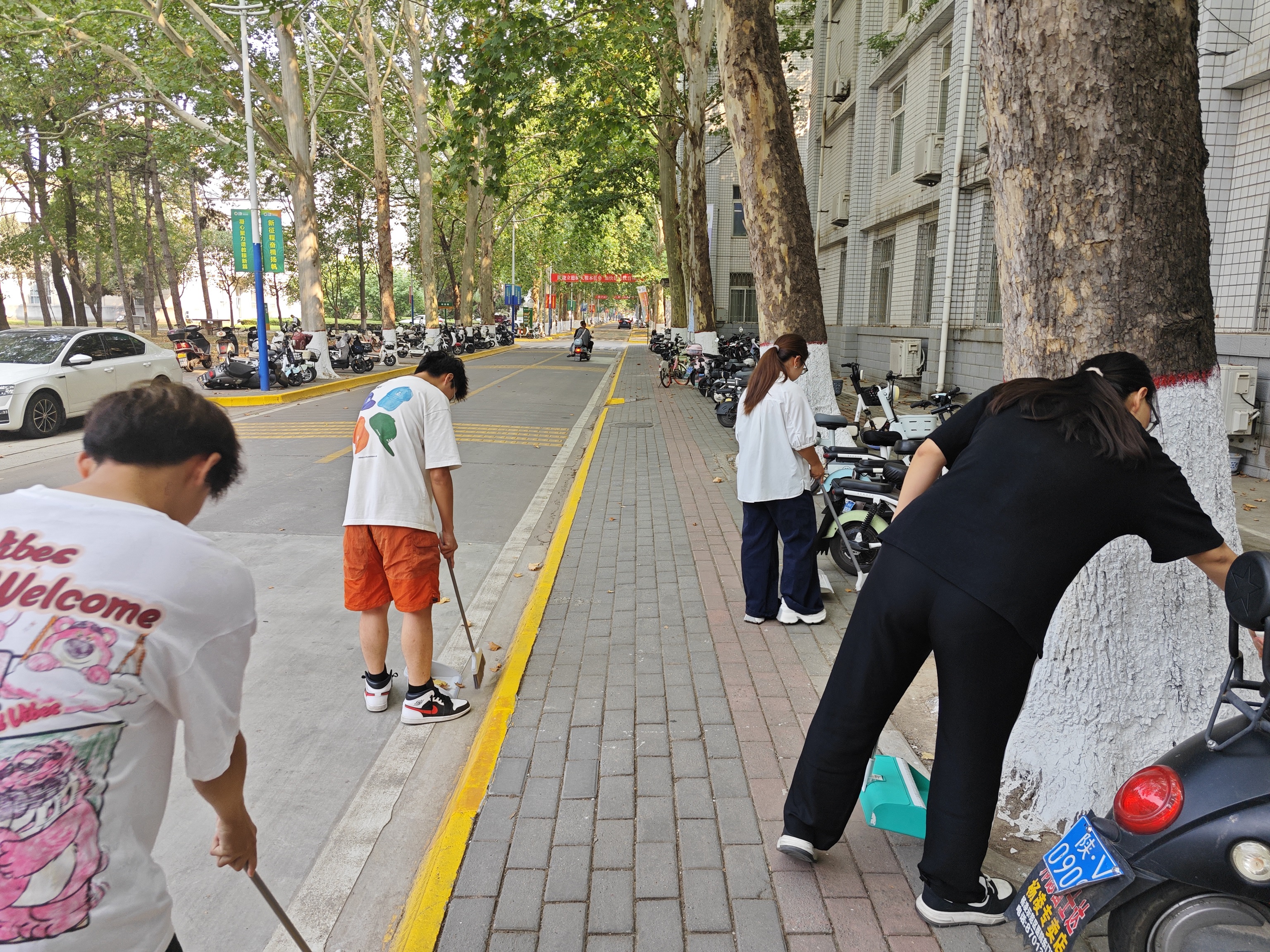 学生在扫落叶