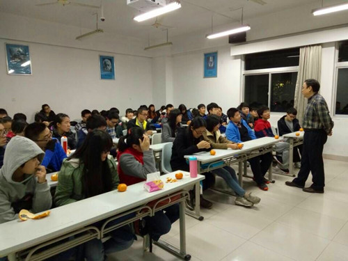 为加强我院2015级新生的专业思想教育工作,引导并加深新生对学院、专业的认知度,做好学业生涯的规划。 11月20日下午,我院童德文教授应邀参加了“专家教授进班级”的活动,与2015级5班的同学进行面对面交流。