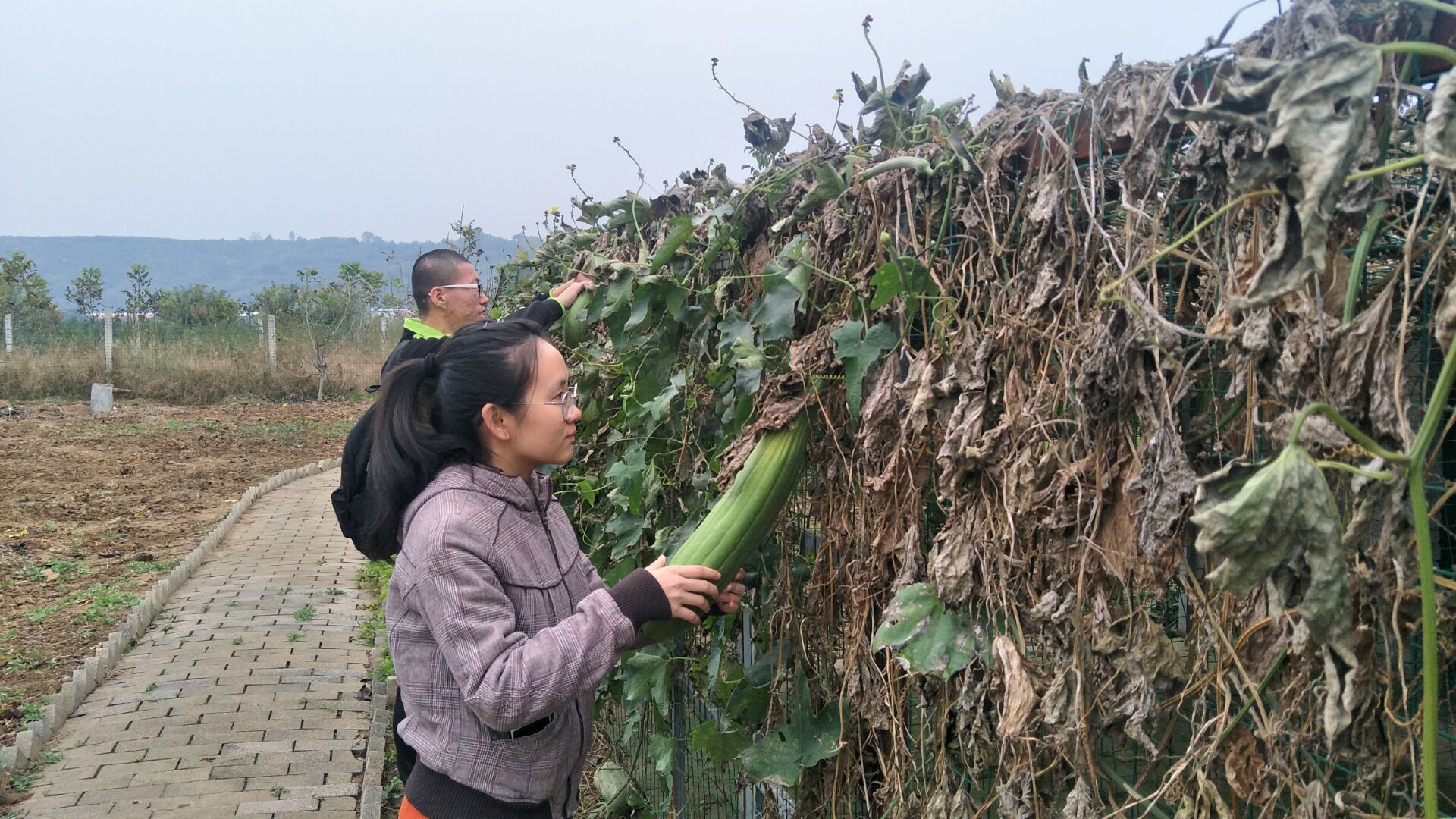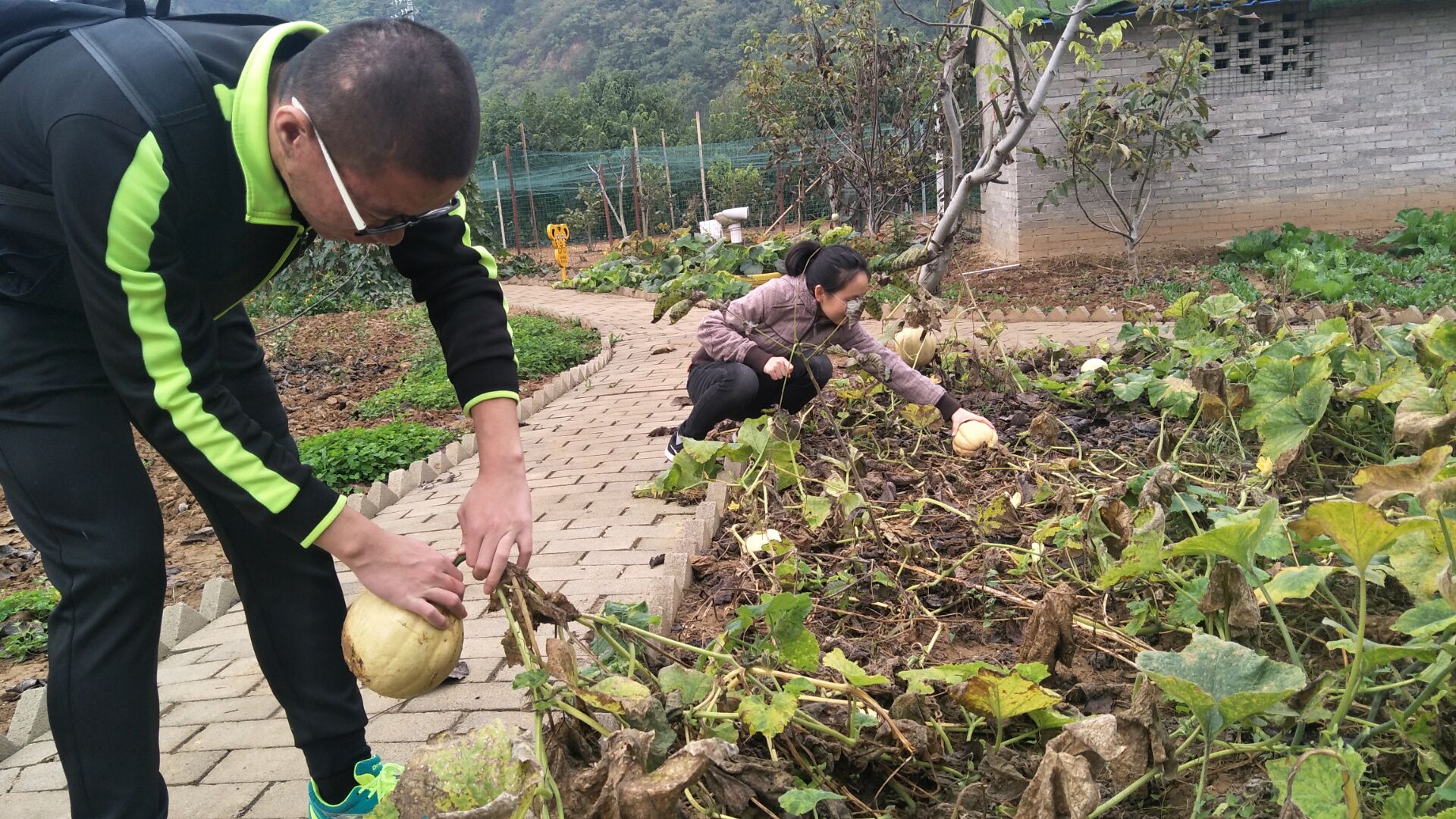 同学们帮助采摘南瓜